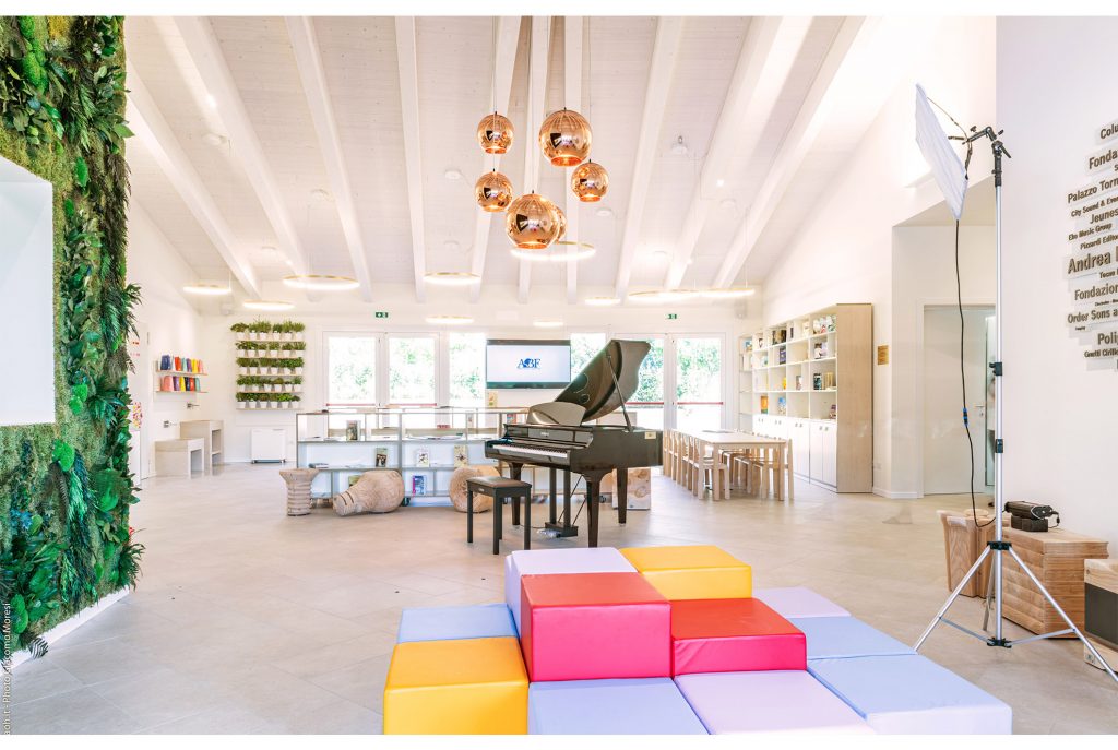 Estate del 2016: nel cuore d’Italia un terribile sisma fermò il tempo. Molte le cittadine coinvolte, tra le più colpite Muccia, un piccolo paese situato a poca distanza dall’epicentro del sisma. Centinaia di persone costrette a lasciare la propria abitazione, i propri ricordi. Ebbene qui il 26 giugno 2019 la comunità è ritornata a sperare grazie alla ricostruzione della nuova scuola “E. De Amicis” realizzata dalla Fondazione Andrea Bocelli. Siamo orgogliosi ed onorati di aver contribuito alla pianificazione dello spazio e al design degli interni di questo meraviglioso progetto umanitario, donando alla comunità non una semplice scuola ma una struttura polivalente, utile e fruibile da grandi e piccini.