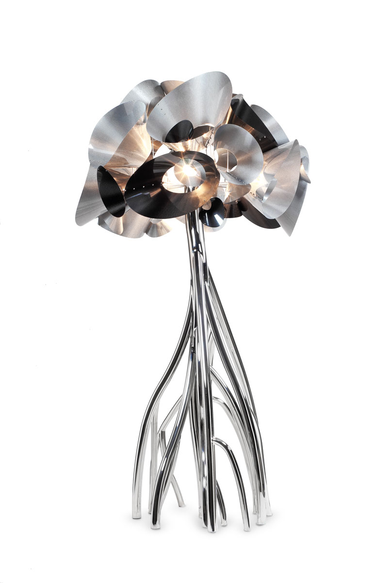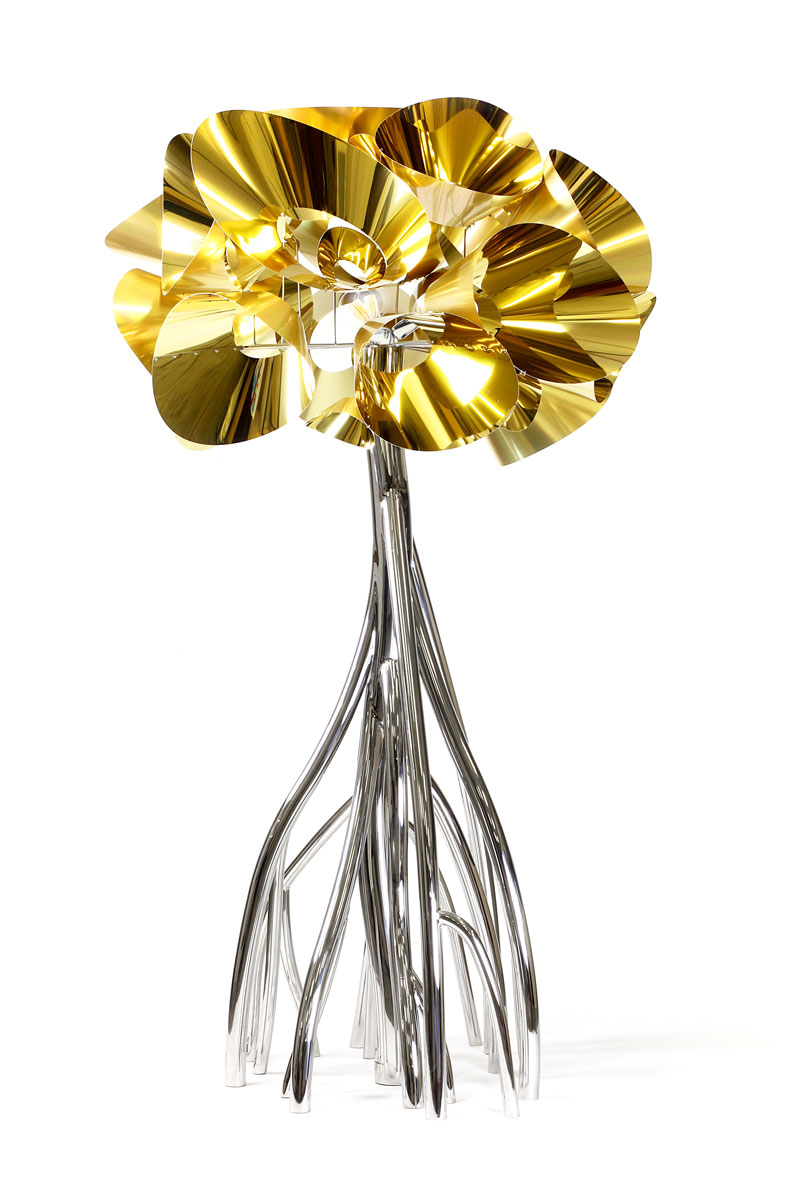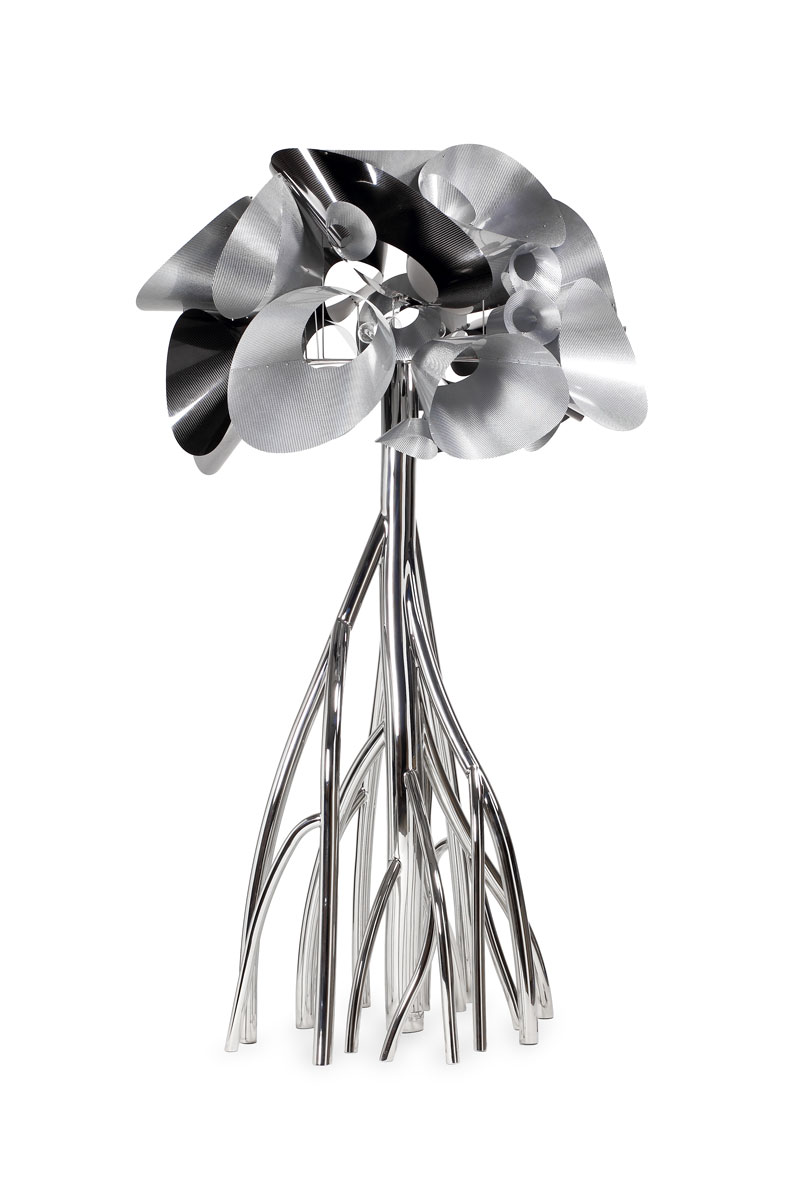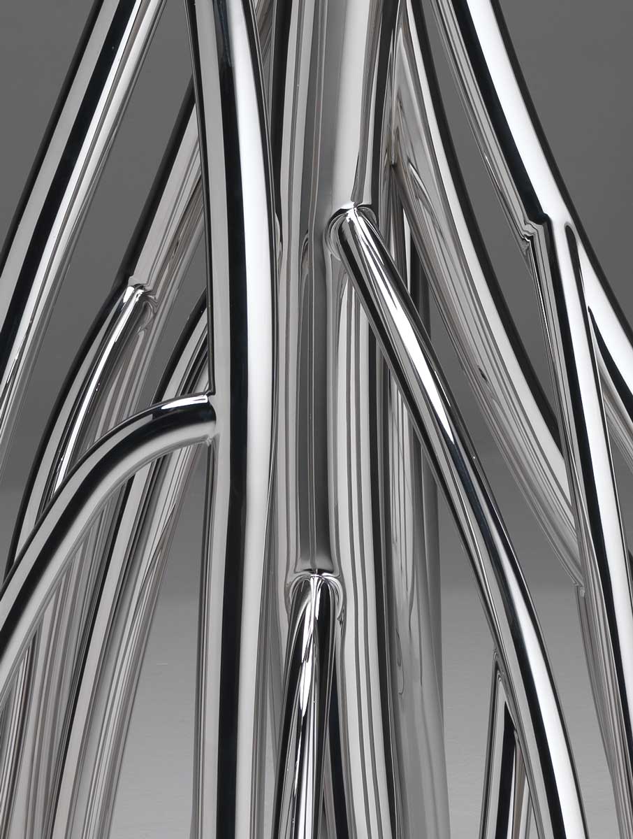 Le inestricabili radici si trasformano in lucidi rami d’acciaio modellati e saldati