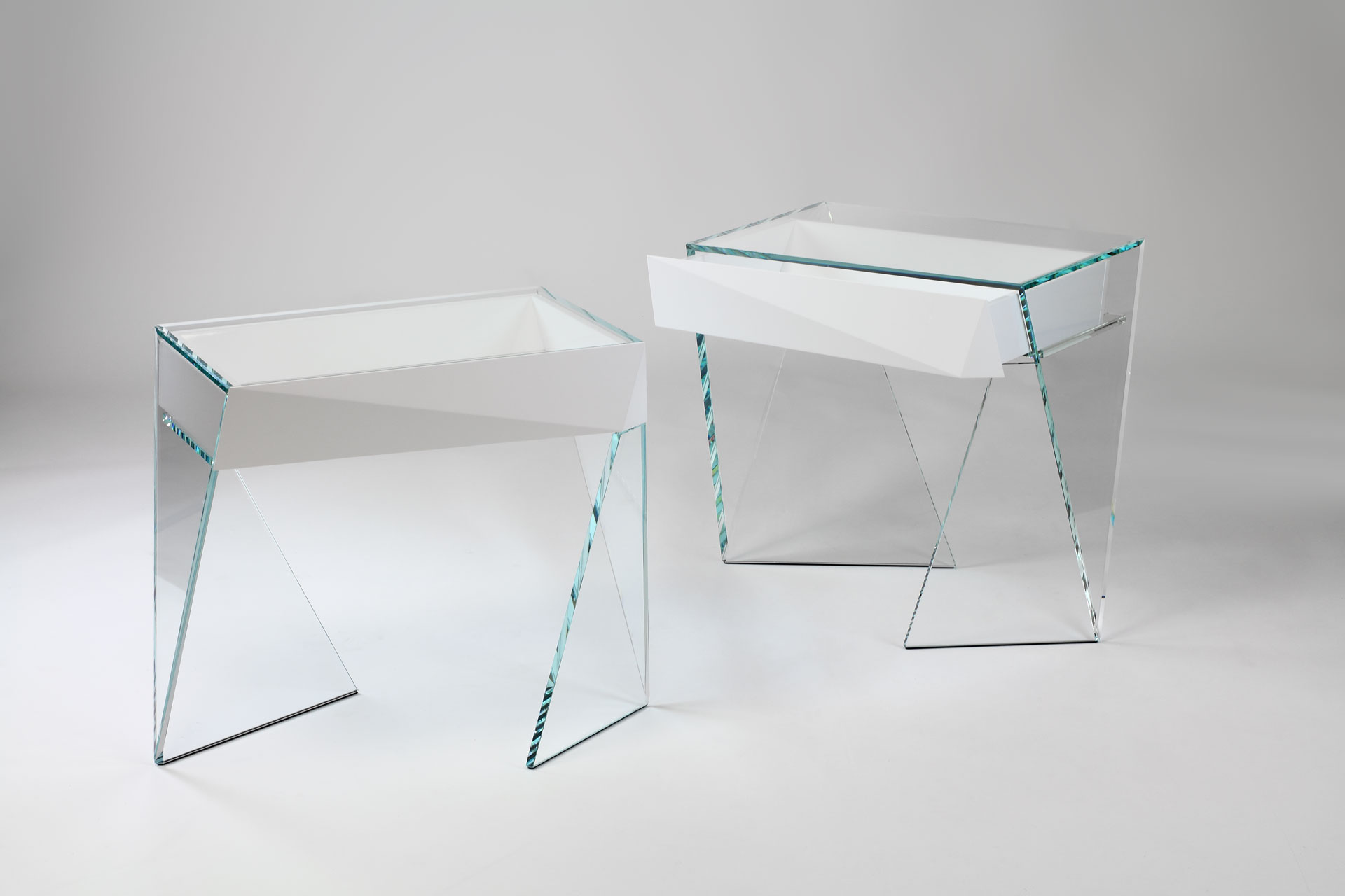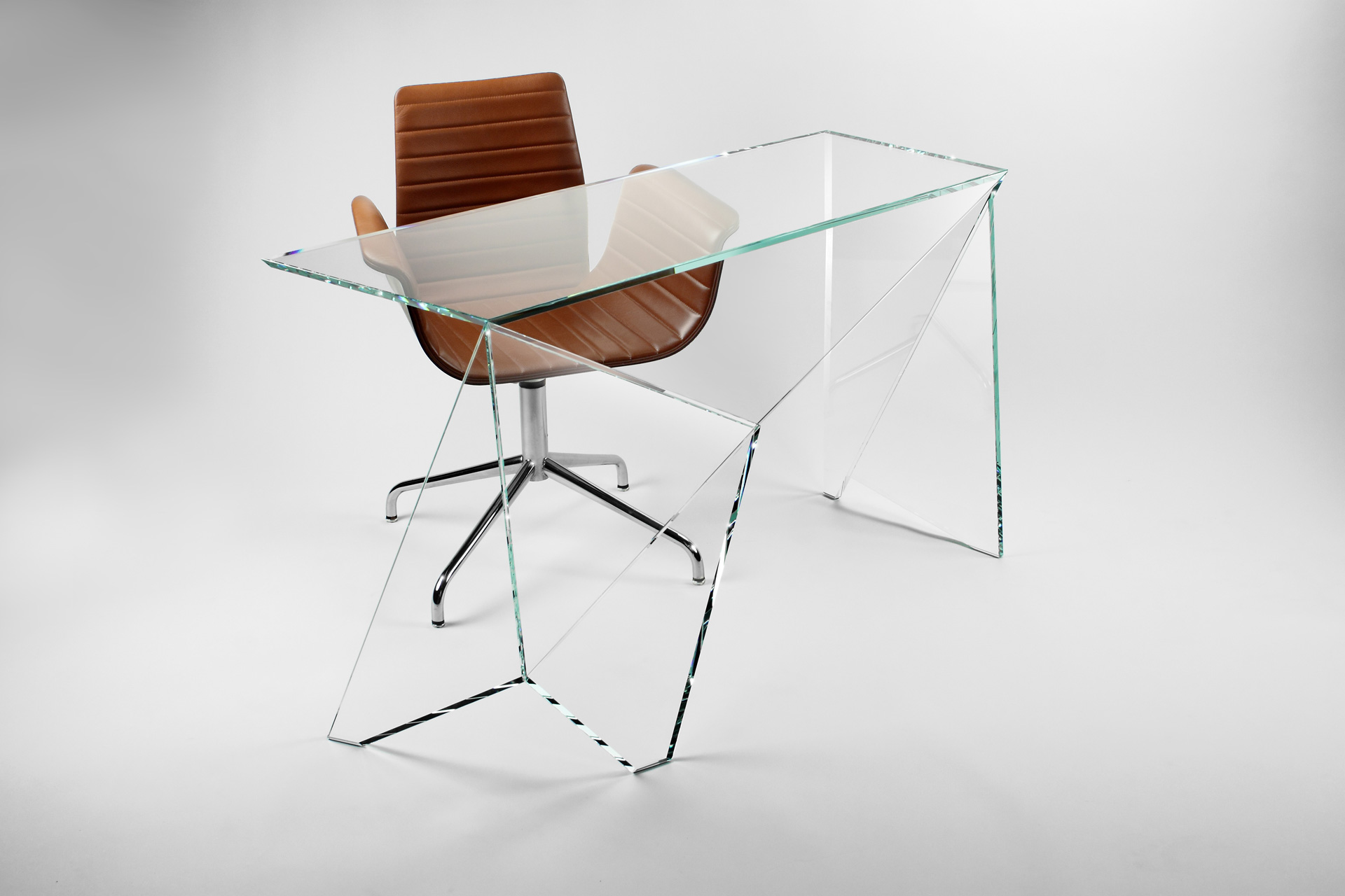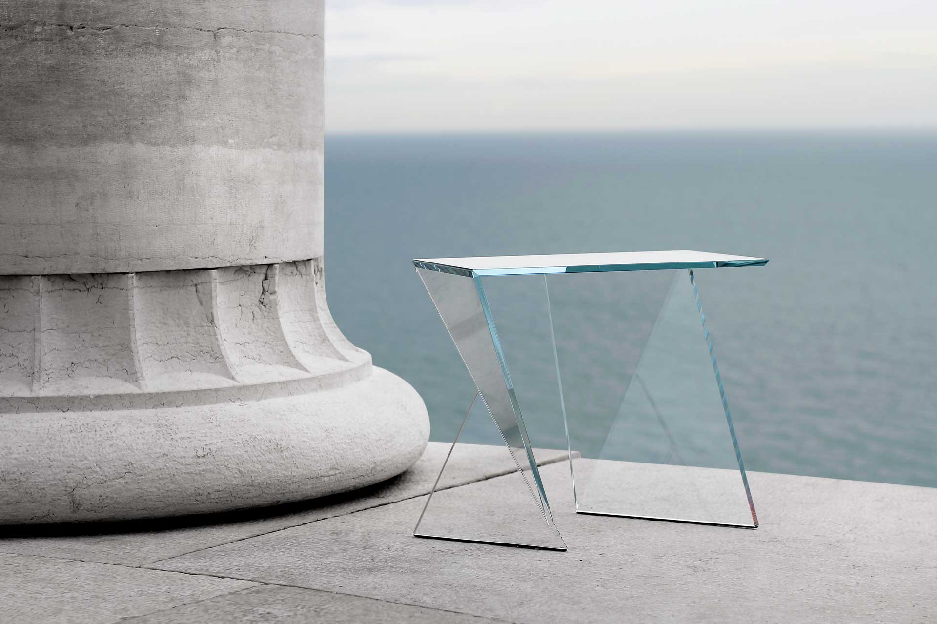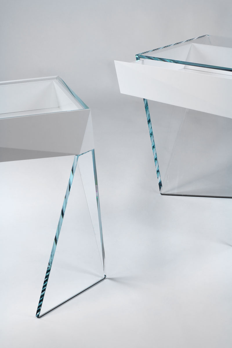 The idea starts off with the concept of taking advantage of the resistance of glass appreciating its optical lightness with the intent to unveil the similarity between the complex art of origami and the workmanship of glass showing its magic transparency.
