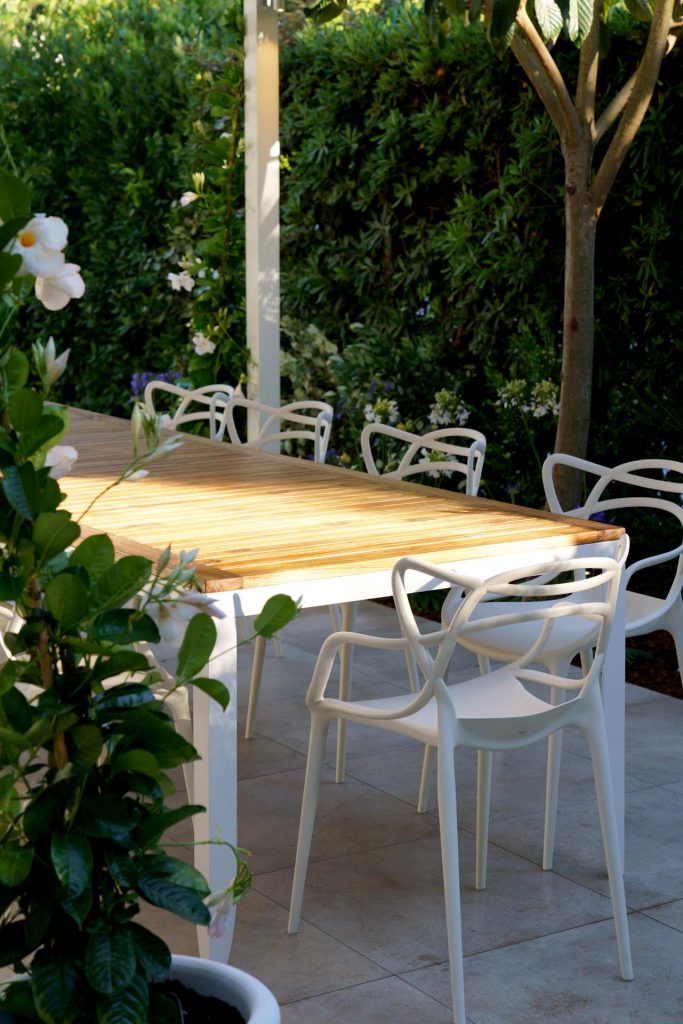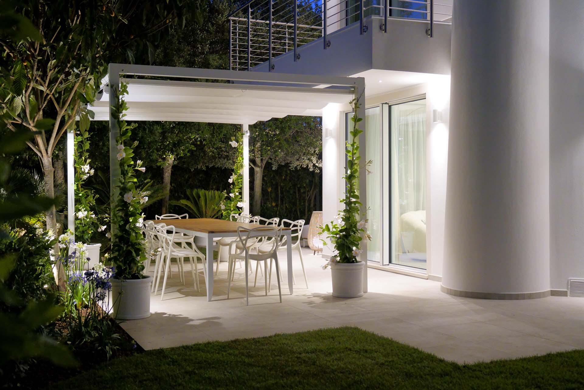 The garden was also designed to be enjoyed at all hours and in all situations, for moments of relaxation or conviviality thanks to the large sofa and table that can seat up to ten persons.